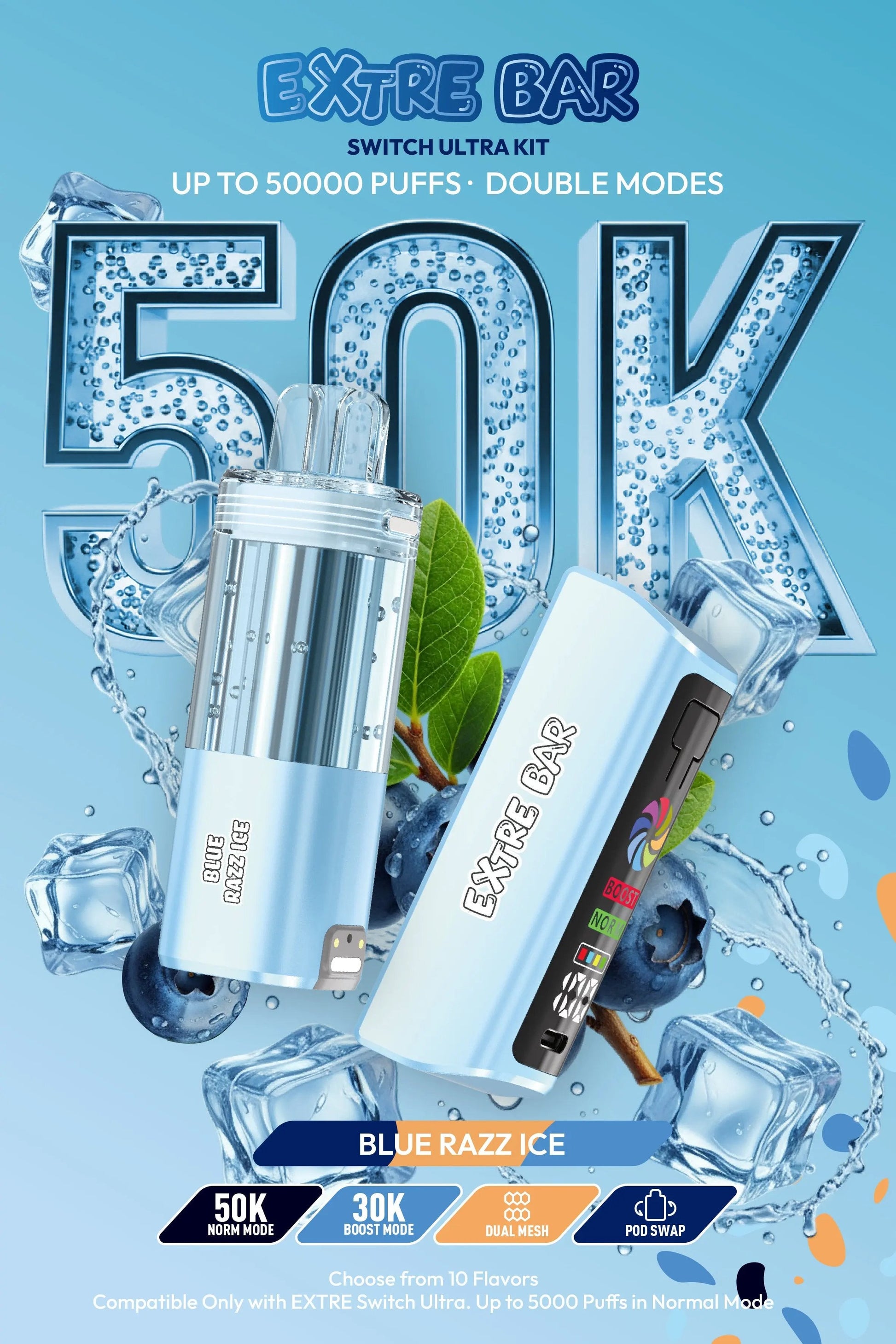 EXTRE BAR SWITCH 50K 5CT BLUE RAZZ ICE